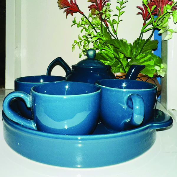 Elevate your tea-time experience with this elegant Blue Ceramic Tea Set, beautifully handcrafted and finished with a glossy glaze. The set includes a compact teapot with a matching lid, three comfortable-hold tea cups, and a stylish serving tray that keeps everything neatly arranged.