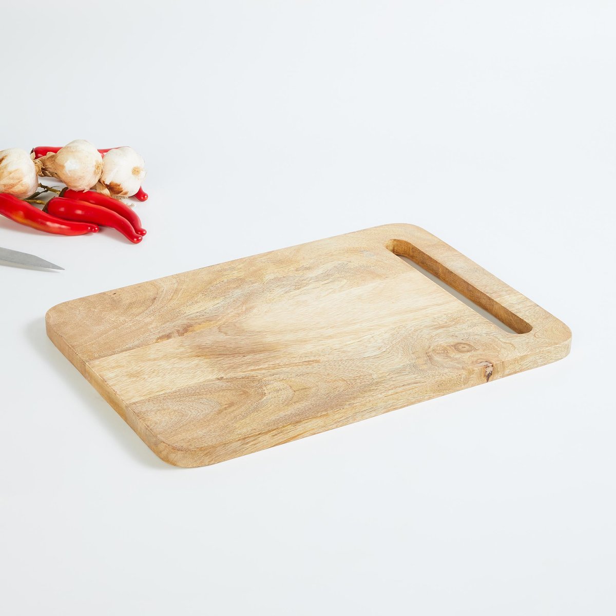 Crafted from high-quality hardwood, this chopping board provides a sturdy surface for cutting, slicing, and serving. Its natural wood grain adds a touch of rustic charm to any kitchen.